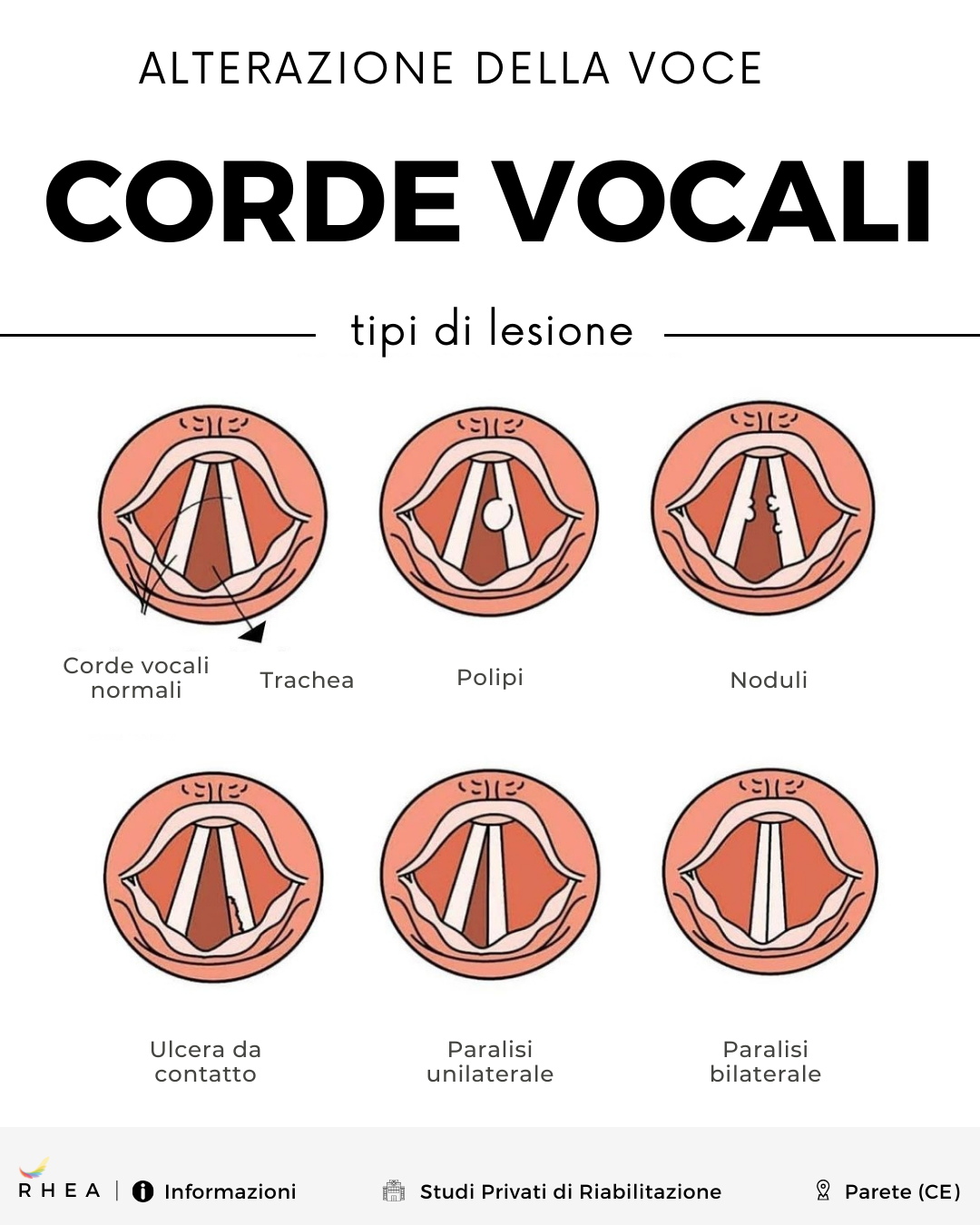 La terapia logopedica รจ in prima linea per il trattamento di lesioni cordali quali noduli, polipi, cisti, per il trattamento delle paralisi cordali unilaterali e per il percorso riabilitativo post chirurgico