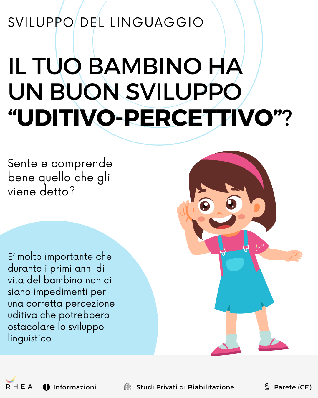 Uno dei prerequisiti del linguaggio รจ dato da un ๐๐จ๐ซ๐ซ๐๐ญ๐ญ๐จ ๐ฌ๐ฏ๐ข๐ฅ๐ฎ๐ฉ๐ฉ๐จ ๐ฎ๐๐ข๐ญ๐ข๐ฏ๐จ-๐ฉ๐๐ซ๐๐๐ญ๐ญ๐ข๐ฏ๐จ, ovvero la capacitร di โsentire beneโ. Si potrebbe non essere consapevoli della perdita uditiva del bambino, in particolare se non ha ancora cominciato a parlare.